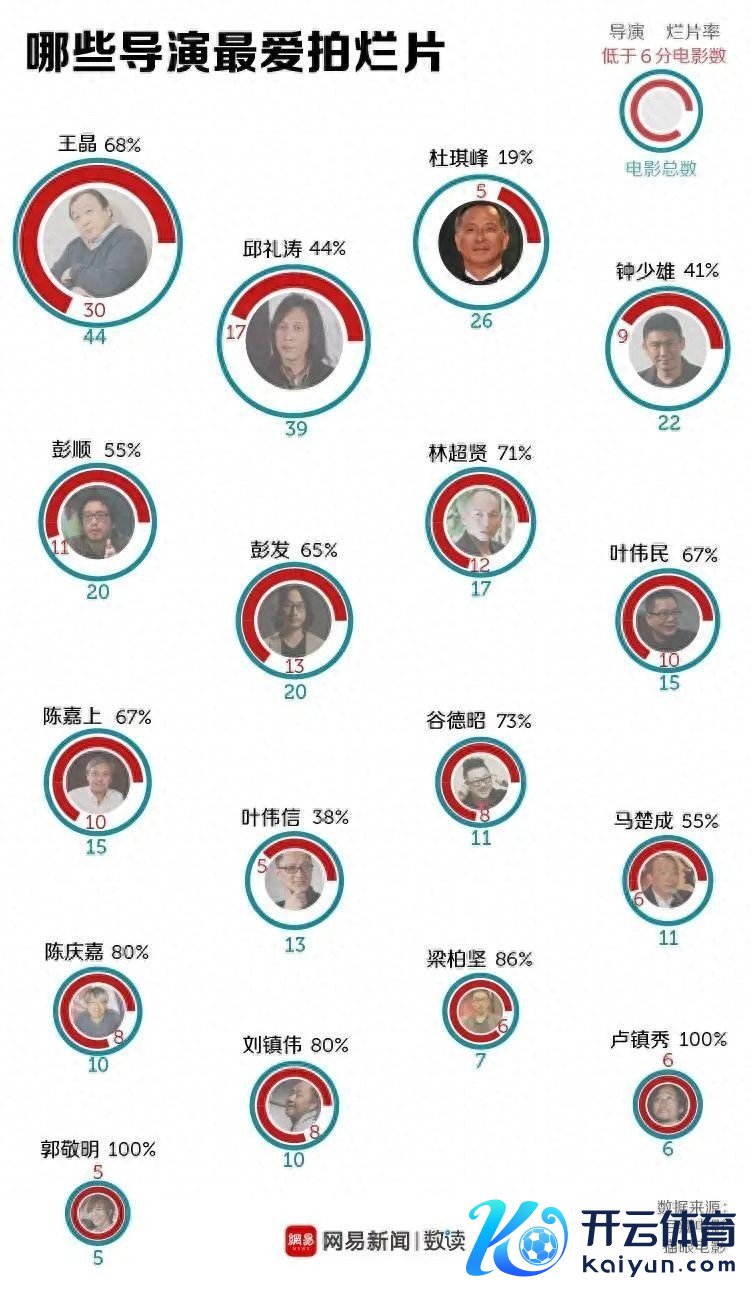 华语电影圈,烂片数目最多的是王晶,44部作品有30部是烂片,烂片指数68%。