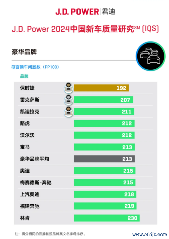 J.D. Power发布的2024中国新车质料商量(IQS)申报线路,雷克萨斯获豪华品牌新车质料排行第二。