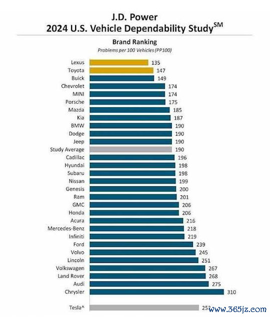 好意思国J.D. Power发布的2024年汽车可靠性评级申报线路,雷克萨斯以十足性上风击败一众外洋著名汽车品牌,在汽车品牌可靠性评级中位列第一。