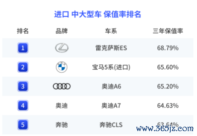 另外,雷克萨斯ES获中大型车三年保值率排行第二,获入口中大型车三年保值率排行第一。