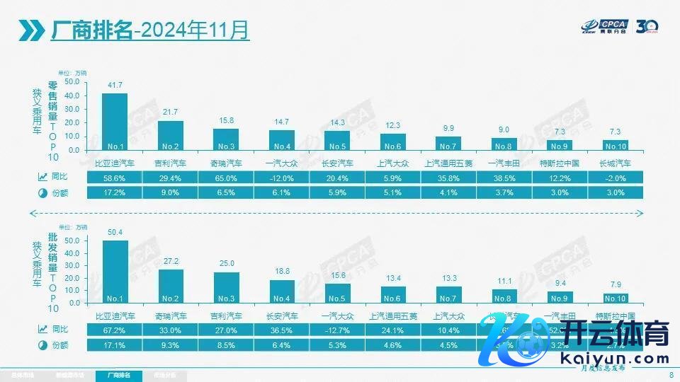 要是柔软国内车市每个月的销量排名,你会发当今结伴车企中,一汽-公共的销量现时是最高的。以本年11月乘联会公布的销量数据为例,一汽-公共月销量为14.7万辆,天然同比着落了12%,但仍然是结伴车企中销量最高的,比排在第二的上汽公共多卖了2.4万辆车。