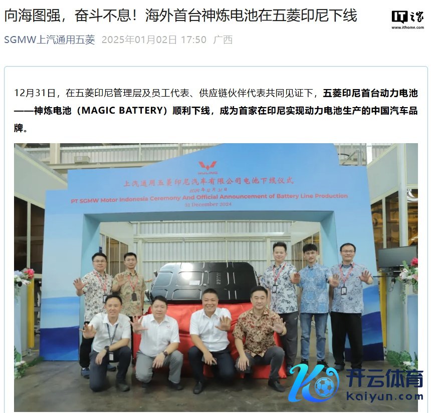 IT之家 1 月 2 日音问开云体育,上汽通用五菱本日告示,五菱印尼首台能源电板 —— 神真金不怕火电板(MAGIC BATTERY)于 2024 年 12 月 31 日顺利下线,成为首家在印尼竣事能源电板分娩的中国汽车品牌。