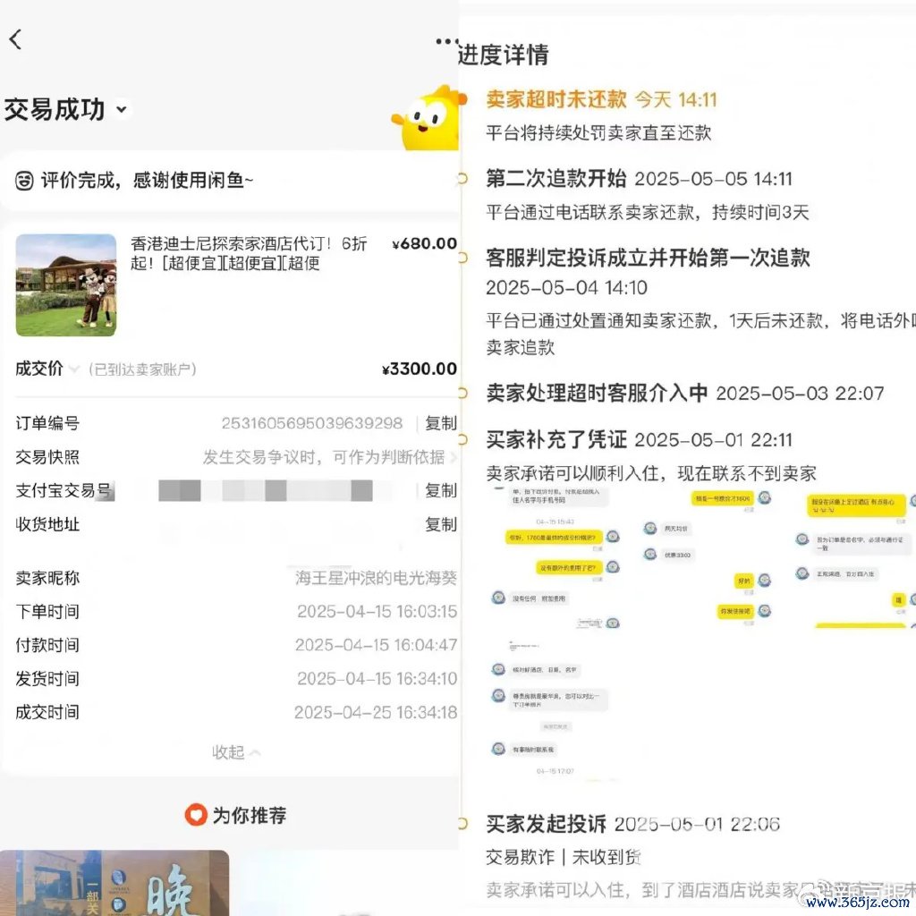 (耗费者来去纪录与平台客服判定耗费者投诉竖立截图,图片起原:信网《闲鱼代订旅馆遭“钱房两空” 平台把卖家身份证信息给了维权客户 》)