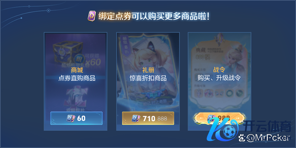 昔日的绑定点券,只能以购买好汉+皮肤+按键+签名+荣耀积分,而在以后,则不错购买战令+回忆礼册返场皮肤+巧妙商店+其余扣头谈具。